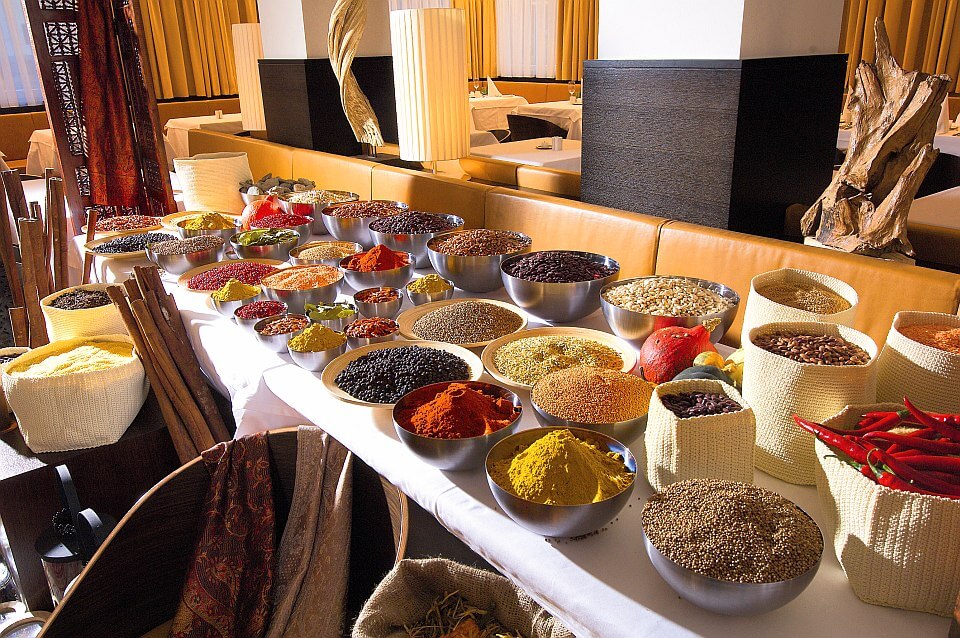 Die Verbindung von Orient und Okzident findet natürlich nicht nur im sympathischen Logo, dem Hirschkamel, Niederschlag. Der ganzheitliche orientalischen Ansatz ist im „märchenhaften“ Amber Spa und in der Karawanserai-Küche mit dem Motto „Bazar meets modern alps“ verwirklicht. Dieses neue Beherbungskonzept hat den Eigentümern, dem Geschwisterpaar Sommerbichler, den Sterne-Award 2012 der österreichischen Wirtschaftskammer als „Hotel der Zukunft“ eingebracht.