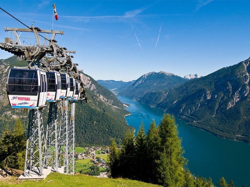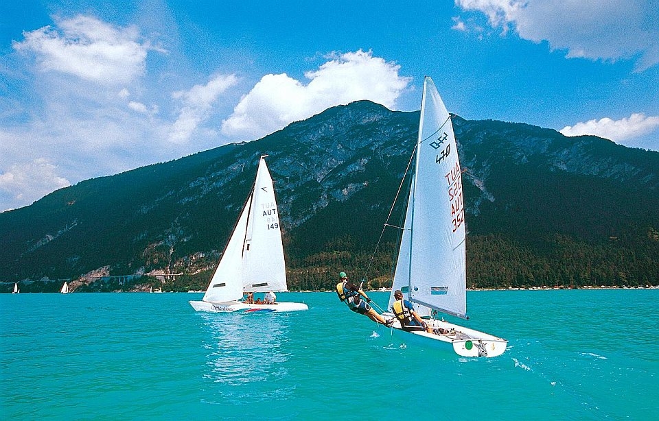 Nicht zu vergessen die Freizeitangebote am grossen See, „Meer Tirols“, wie der grösste Badesse Tirols genannt wird. Schwimmen, Segeln, Windsurfen, Kitesurfen, Tauchen und Bootfahren – alles möglich am kristallklaren Achensee.